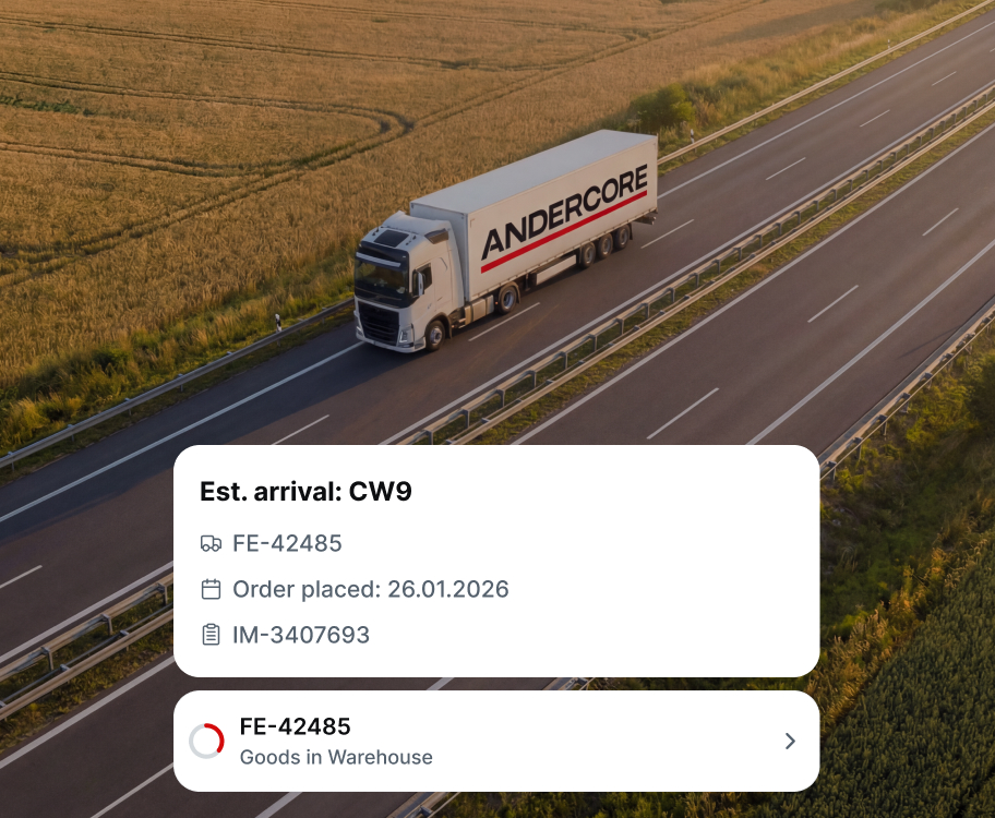Andercore runs the full order process in one guided flow. Our AI system structures requests, finds the right supply, coordinates logistics and financing, and manages delivery and reordering across the entire physical chain.