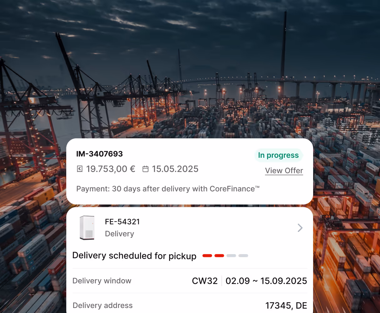 A market where procurement, logistics, and financing run in one seamless workflow – with less effort, less risk, and more transparency for everyone involved.