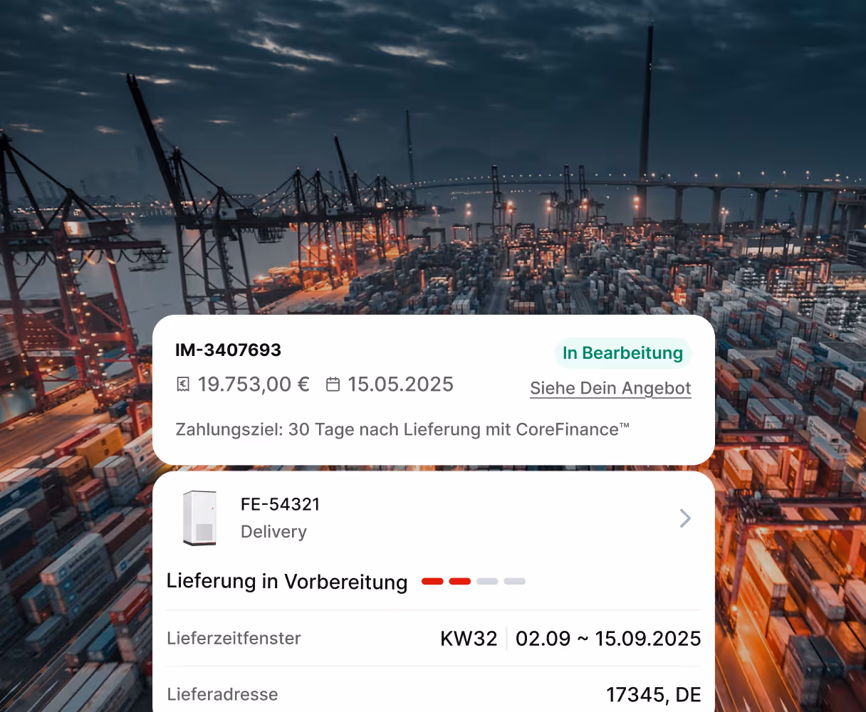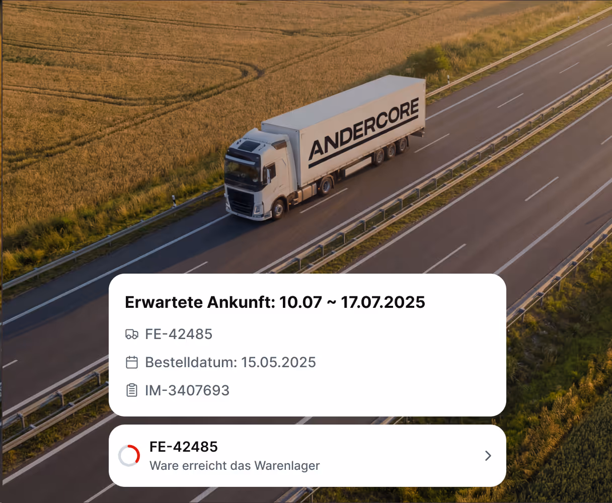 Andercore steuert den gesamten Bestellprozess in einem klar strukturierten Ablauf. Unsere KI erfasst Anforderungen, identifiziert passende Lieferquellen, koordiniert Logistik und Finanzierung und steuert Lieferung sowie Nachbestellungen entlang der gesamten physischen Wertschöpfungskette.